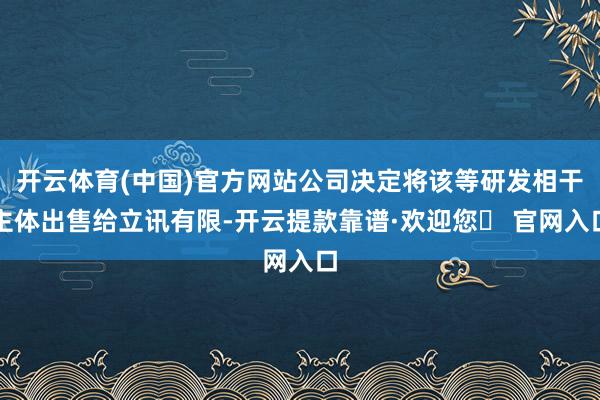 开云体育(中国)官方网站公司决定将该等研发相干主体出售给立讯有限-开云提款靠谱·欢迎您✅ 官网入口